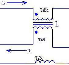 圖1所示的是共模電感的濾波電路,Tr2a和Tr2b就是共模電感L的兩個(gè)線圈。這兩個(gè)線圈繞在同一磁芯上,匝數(shù)和相位都相同。這樣,當(dāng)電路中流過電流ia和ib的大小相同、方向相反時(shí),電流在同相位繞制的電感線圈中產(chǎn)生反向的磁場而相互抵消,磁芯中沒有交變的磁通量產(chǎn)生。