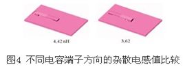 大功率器中分布雜散電感的抑制離不開緩沖電容和電解電容,出于成本考慮,一般選用鋁電解電容支撐母線直流電壓,由于其耐壓等級(jí)低,需要大量串并聯(lián),連接線路上的雜散電感會(huì)造成各并聯(lián)電容間高頻電流分布不均勻,距離功率器件較近的電容會(huì)承受高于額定值的電流而急劇發(fā)熱,因此這兩者是工業(yè)工程應(yīng)用中的主要問題。在電容結(jié)構(gòu)設(shè)計(jì)中,主要影響因素分別是:電容端子設(shè)計(jì)方向、電容串聯(lián)結(jié)構(gòu)設(shè)計(jì)。圖4分別測量了不同電容端子設(shè)計(jì)電感的值,圖5給出了典型設(shè)計(jì)方案和主流低電感設(shè)計(jì)方案中電容串聯(lián)方式的不同。從圖5中可以得出這樣的結(jié)論,電容端子的方向?qū)﹄姼杏休^大影響,而電容采用無環(huán)路串聯(lián)方式可以極大的降低母排電感。圖6給出了電容端子設(shè)計(jì)良好時(shí)母排電流的有限元分析,由圖6可以看出在母線排表面電流分布十分均勻,等效作用降低了電感。