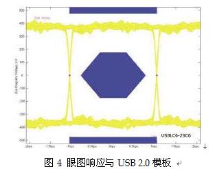 還有一種方法可以檢查這個軌對軌保護元器件對USB協(xié)議正常工作模式的影響,就是通過圖4的眼圖響應(yīng)來分析信號數(shù)據(jù)位的完整性。