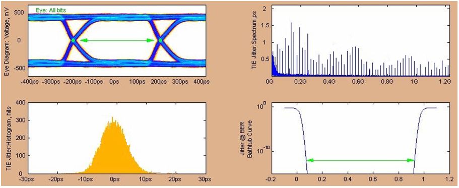 圖11 2457.6Mbps發(fā)送側(cè)眼圖(經(jīng)5inches FR4走線,調(diào)整了最優(yōu)去加重補(bǔ)償)