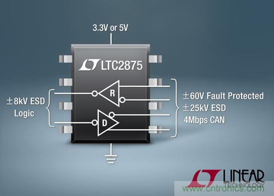 凌力爾特公司推出高壓容限CAN收發(fā)器LTC2875 提供±60V故障保護(hù)