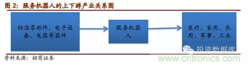 服務(wù)機器人行業(yè)生產(chǎn)所用的主要零部件為自動焊機、電子器件、微處理器、機器人用伺服電機、高精度減速器、機加件、氣動元器件、傳感器、電池、單板機等,歸屬于標準零部件、電子設(shè)備以及電子元器件等。服務(wù)機器人產(chǎn)業(yè)的下游則主要是醫(yī)療、家用、農(nóng)用、軍事等行業(yè)和領(lǐng)域。