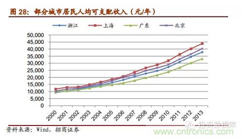 我國家用機器人發(fā)展最主要的驅(qū)動因素有勞動力價格的提高、城鎮(zhèn)居民人均可支配收入的提高等。勞動力價格的上升使得簡單勞動的設(shè)備替代率明顯上升,人們一方面想從簡單家務(wù)勞動中釋放出來而另一方面家政服務(wù)勞力的價格越來越高,因而家務(wù)機器需求有其剛性驅(qū)動。同時,隨著我國經(jīng)濟的高速發(fā)展,在過去的10年里城鎮(zhèn)居民的可支配收入大致翻了三倍,人們生活水平和消費水平不斷地提高,越來越多的家庭具有家用機器人的購買能力。另外,現(xiàn)在信息和科技傳播速度飛快,各種科技產(chǎn)品成本在競爭中下降迅猛。iRobot2013年在中國市場的家用清潔機器人銷售額增幅大于3倍,剛公布的14年上半年年報顯示受中國需求的強勁拉動iRobot在亞太地區(qū)清潔機器人銷售增幅高達18%。在中國這種一個高速發(fā)展的人口大國,可預(yù)計,未來我國家用智能機器人的市場規(guī)模巨大。
