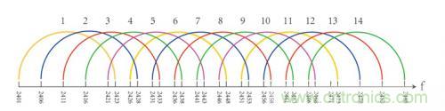 在上圖中,我們可以看到小米的多功能網(wǎng)關將ZigBee芯片JN5168和Wi-Fi模塊集成到一個小小的電路板上。這個芯片使用的ZigBee頻道是全球免費頻道,2.4GHz.Zigbee協(xié)議802.15.4標準把2.4 GHz的ISM頻段劃分為16個信道,每個信道帶寬為2 MHz,ZigBee頻譜列表如下所示: