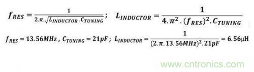 式1. PCB上集成的外部天線電感(LINDUCTOR)必須與標(biāo)簽的內(nèi)部調(diào)諧電容(CTUNING)相匹配,使電路諧振點(diǎn)為13.56MHz。