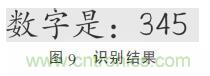 圖9為本系統(tǒng)對圖2的識別結(jié)果,可以看到,該系統(tǒng)可以快速實(shí)現(xiàn)液晶屏數(shù)字的識別。