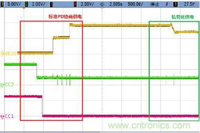 圖6.基于Cypress CCG2方案的PD協(xié)議的充電器供電協(xié)商波形