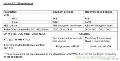 LoRaWAN模組關鍵的器件是MCU和SX127x。MCU多以超低功耗為主要選擇,在Semtech公司的應用筆記中提到了MCU的規(guī)格和要求 -《AN1200.28 LoRaWAN MCU Spececification and Requirements》: