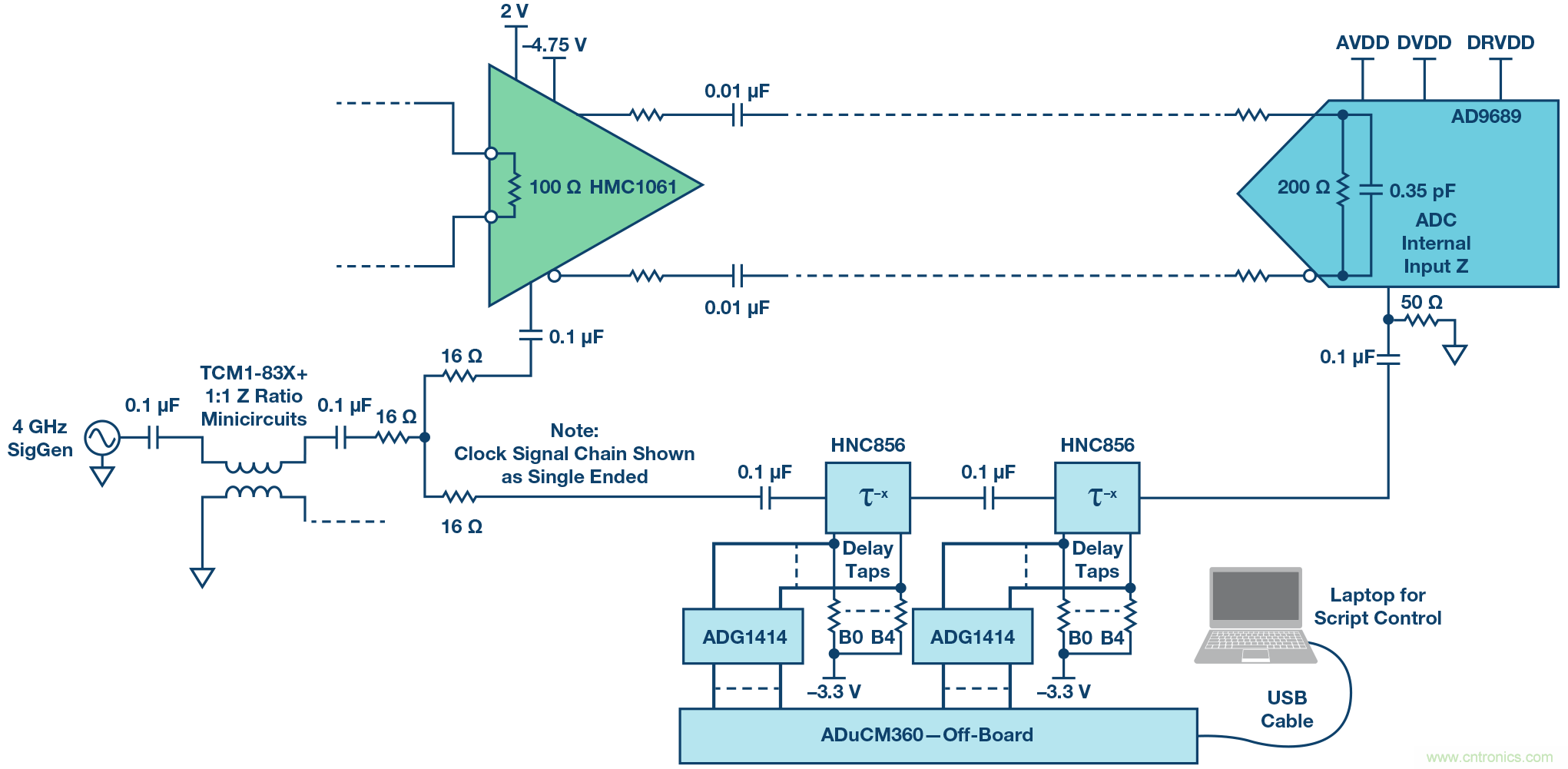 圖5. THA和ADC前端網(wǎng)絡(luò)及信號(hào)鏈。