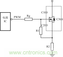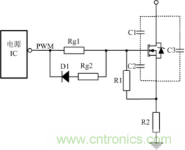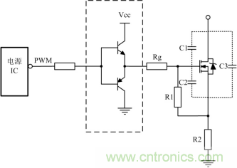 開關(guān)管開通瞬時,驅(qū)動電路應(yīng)能提供足夠大的充電電流使MOSFET柵源極間電壓迅速上升到所需值,保證開關(guān)管能快速開通且不存在上升沿的高頻振蕩。