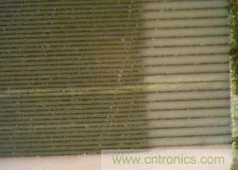 熱沖擊主要發(fā)生在波峰焊時,溫度急劇變化,導(dǎo)致電容內(nèi)部電極間出現(xiàn)裂縫,一般需要通過測量發(fā)現(xiàn),研磨后觀察,通常是較小的裂縫,需要借助放大鏡確認(rèn),少數(shù)情況下會出現(xiàn)肉眼可見的裂縫。