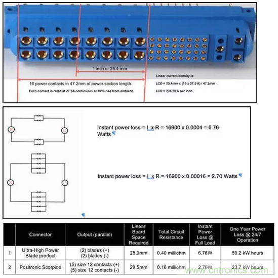 與安費諾的PwrBladeULTRA®連接器系統(tǒng)相比,Positronic的Scorpion SP系列連接器是一種機械接觸式電源連接器,單位效率從1,560W提高0.26%。在連續(xù)一年,每周7天,每天24小時運行的情況下,Scorpion連接器可節(jié)省35.5度電,相當(dāng)于節(jié)省了3美元以上。因此,從運營的第三年開始,僅節(jié)省能源成本就會超過Scorpion連接器的全部成本。