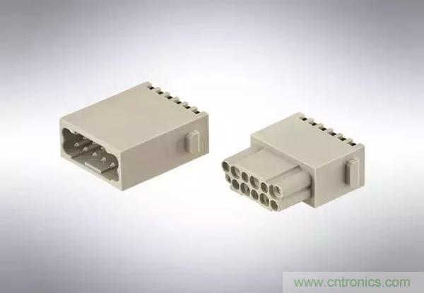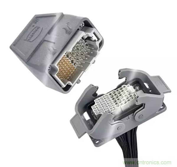 第二個(gè)例子是,Han® 高密度模塊:滿載的情況下,在模塊中有25個(gè)插針,能夠傳輸4A/50V的信號(hào)。其他具有更高的接觸密度的Han®模塊也在開發(fā)之中。