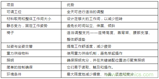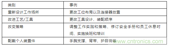 表 3:改進工位設計的建議