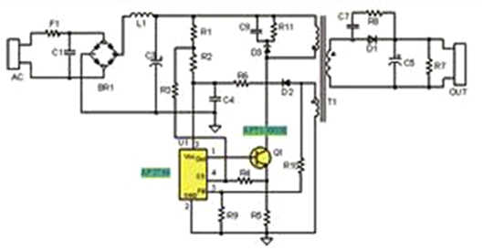 1. 基于最新的LED專用驅(qū)動(dòng)芯片AP3766,采用原邊控制方式,無須光耦和副邊電流控制電路,實(shí)現(xiàn)隔離恒流輸出,電路結(jié)構(gòu)簡單。通過電阻R5檢測原邊電 流,控制原邊電流峰值恒定,同時(shí)控制開關(guān)占空比,保持輸出二極管D1的導(dǎo)通時(shí)間和整個(gè)開關(guān)周期時(shí)間比例恒定,實(shí)現(xiàn)了輸出電流的恒定。