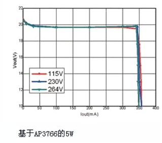 2. AP3766采用專有的“亞微安啟動(dòng)電流”技術(shù),僅需0.6μA的啟動(dòng)電流,因此降低了啟動(dòng)電阻R1和R2上的功耗,提高了系統(tǒng)效率。典型5W應(yīng)用效率大于80%,空載功耗小于30mW。