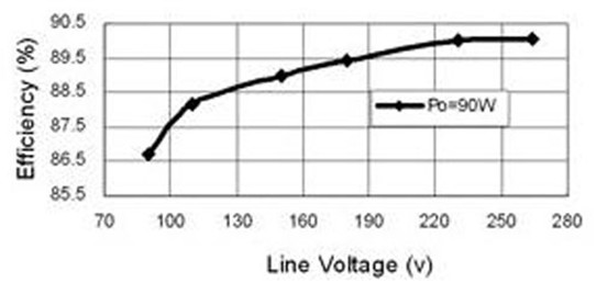 圖12 90W LED電源滿載效率曲線