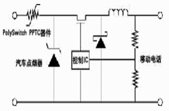 (4)PPTC器件還可裝在電池組的輸入端,增加一層保護作用。如果設(shè)備是為耳機、汽車免提設(shè)備這類有源附件供電時,在電源輸出端,也需要保護。