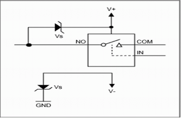 在現(xiàn)有設(shè)計(jì)中,大多數(shù)系統(tǒng)工作于標(biāo)準(zhǔn)電源電壓(單極性3.3V或5V,或雙極性±3.3V或±5V),這個(gè)電壓通常也是板上的最高電壓。在實(shí)際使用中,電路板的輸入端子可能會(huì)暴露于比電源電壓更高的電壓之下,同時(shí),電路板電源被切斷后,輸入端子上的電壓有可能仍然存在。受這種過壓影響的第一個(gè)元件常常是多路復(fù)用器或開關(guān),這就要求為開關(guān)元件和下游電路提供適當(dāng)?shù)谋Wo(hù)。