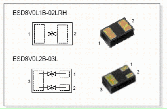 圖1:ESD8V0L1B-02LRH和ESD8V0L2B-03L