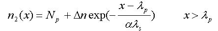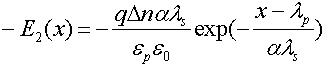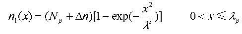 本文采用電子分布曲線擬合近似,設多晶硅/二氧化硅界面處為0=x點,向上為正,峰值處的點的坐標為,分別用以下分布來近似上升和下降階段的載流子分布: