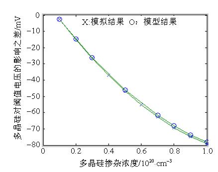 - 計算了在不同摻雜濃度下多晶硅量子效應所引起的MOSFET閾值電壓的偏移