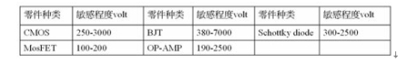 表1 幾種不同類(lèi)型器件的靜電敏感程度