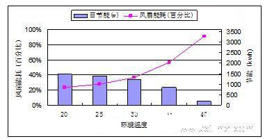 從圖3可看出,隨著環(huán)境溫度的降低,換熱單元的耗能隨至減少。當環(huán)境溫度為20度時,換熱單元耗能只是滿負荷功耗的25%,日可節(jié)約電能約1.5度。