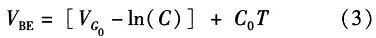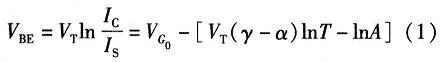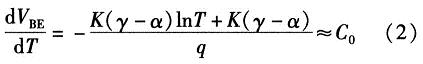 如果忽略由溫度變化引起lnT項變化對式(2)的影響,dVBE/dT可近似等于常數(shù)C0。常溫下C0約為-2 mV/K。為了簡化計算,則PN結(jié)關(guān)于溫度的變化方程可近似線性為