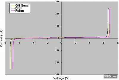 當(dāng)對以上器件的DC性能進(jìn)行比較的時(shí)候,結(jié)果看起來似乎是相同的(參見圖2所示曲線)。此外,它們都聲稱符合IEC61000-4-2第4級(jí)標(biāo)準(zhǔn),這就意味著它們將都經(jīng)受住高達(dá)8kV接觸電壓的ESD沖擊。