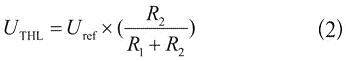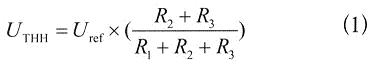 式(1)和式(2)是理論上的公式,實(shí)際上,為了將上述的滯回原理應(yīng)用于實(shí)際的電池系統(tǒng),還要考慮一個(gè)參考電壓的問題。參考電壓Uref是不能變的,否則上下電壓門限就會(huì)發(fā)生變化。而且參考電壓是由電池電壓供電產(chǎn)生的,它必須比電池電壓低的多,而且功耗極小。