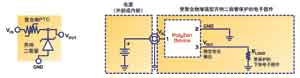 聚合物增強型齊納二極管相對平坦的電壓-電流響應幫助對輸出電壓進行鉗位,即使在輸入電壓和電源電流變化的時候也是如此。簡單地說,聚合物增強型器件提供了一種能夠像齊納二極管那樣提供保護的部件,與齊納二極管相比,除了正常PCB印刷線路之外,不需要其他特殊的散熱結,可以承受非常高的電源故障條件。