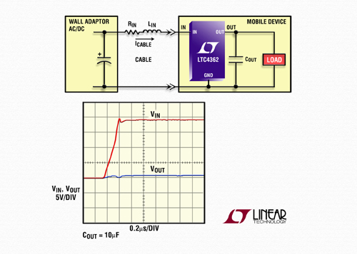 凌力爾特公司 (Linear Technology Corporation) 推出 2.5V 至 5.5V 過壓和過流保護(hù)器 LTC4362,該器件為保護(hù)低壓、便攜式電子產(chǎn)品免受電壓瞬態(tài)和電流浪涌的損害而設(shè)計(jì)。電源適配器失效或故障,或者將一個(gè) AC 適配器帶電插入設(shè)備的電源輸入時(shí),可能會發(fā)生過壓。無意間將錯誤的電源適配器插入設(shè)備可能會因過壓或負(fù)電源電壓而引起損壞。LTC4362 運(yùn)用準(zhǔn)確度為 2% 的 5.8V 過壓門限檢測過壓事件,并在 1us (最大值) 時(shí)間內(nèi)快速響應(yīng),以隔離下游組件和輸入。高達(dá) 28V 的過壓保護(hù)由一個(gè)內(nèi)部雪崩額定的低 RDS(ON) MOSFET 實(shí)現(xiàn),而且在大多數(shù)應(yīng)用中無需瞬態(tài)電壓抑制器 (TVS) 或其它外部組件,就可承受電感電纜瞬態(tài)。此外,LTC4362 監(jiān)視一個(gè)內(nèi)部電流檢測電阻器兩端的壓降,以提供準(zhǔn)確度為 20% 的 1.5A 過流門限。LTC4362 目標(biāo)是具有多個(gè)電源選項(xiàng)的便攜式電子產(chǎn)品,如通過交流和汽車電池適配器以及USB端口充電的蜂窩電話、MP3/MP4 播放器、數(shù)碼相機(jī)等。