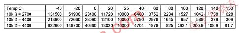 表1:該表顯示了一個(gè)典型的10kΩ標(biāo)稱熱敏電阻在3個(gè)不同β值時(shí)的電阻值。