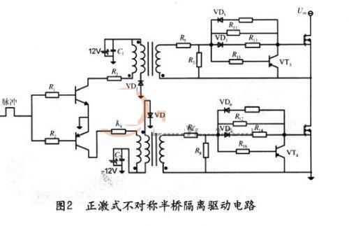 1.2 正激式不對(duì)稱半橋隔離驅(qū)動(dòng)電路