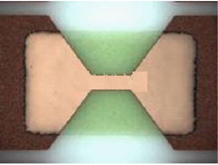 然而,還必須嚴格控制熔體的幾何形狀,才能控制貼片式保險絲的額定電流。使用照相印刷工藝的熔體從結構上保證了能夠產(chǎn)生精確的幾何輪廓,把端子間未用的導電材料溶解掉。通過照相印刷工藝,可控制熔體的長度和寬度,達到與濺射薄膜層厚度相同的準確度和精度。
