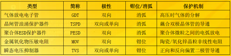 市場上有一系列對電子系統(tǒng)起保護作用的產(chǎn)品。下表簡單描述了各種產(chǎn)品的特征。