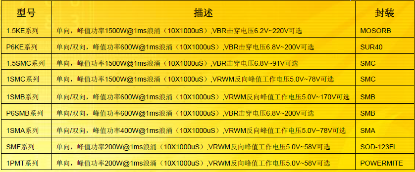 瞬態(tài)電壓抑制器(TVS):是基于雪崩二極管和穩(wěn)壓二極管。單一的二極管本質(zhì)上是單向的鉗位設(shè)備。