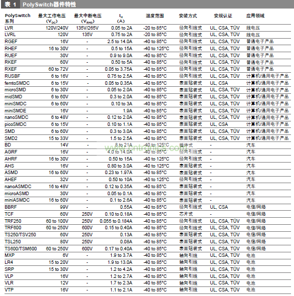- PolySwitch自復式器件器件選用方法