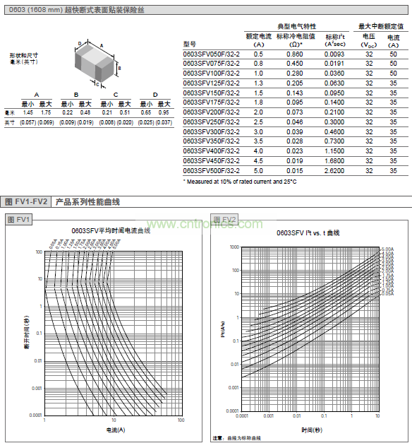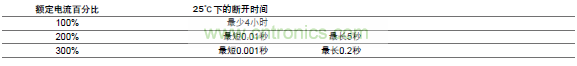 表 FV1 熔斷時間特性