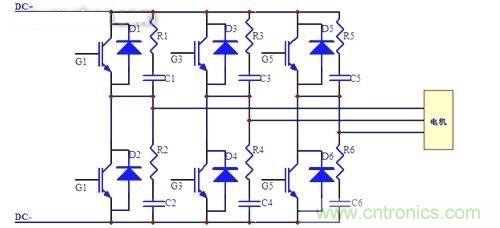 在集電極和發(fā)射極之間并接RC濾波電路,可有效地抑制關(guān)斷過電壓和開關(guān)損耗。但在實(shí)際應(yīng)用中,由于DC電源前端的浪涌突波會(huì)使集電極過電壓,并使RC濾波電路部分的抑制效果生效,IGBT通常都會(huì)被擊穿或者短路。另外,在電機(jī)起動(dòng)時(shí),由于起動(dòng)時(shí)的大電流,在主線路中分布的電感亦會(huì)造成較大程度的感應(yīng)過電壓,使IGBT損壞。同時(shí),電機(jī)勵(lì)磁造成的感應(yīng)電動(dòng)勢(shì),對(duì)電路的破壞也相當(dāng)?shù)卮?mdash;—工程師們經(jīng)常沒有考慮到這一點(diǎn)。