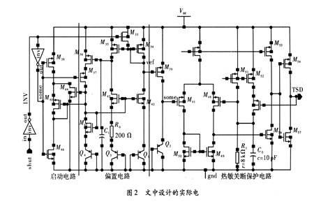 整個工作過程中,TSD的正反饋起到了遲滯的作用。使得正常工作時,TSD輸出高電平作用于電路其它模塊。當(dāng)溫度過高時,TSD輸出低電平作用于電路其它模塊,使芯片停止工作,保護芯片。