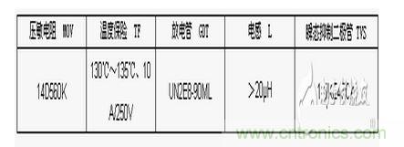 元件選擇:壓敏電阻 MOV溫度保險 TF放電管 GDT電感 L瞬態(tài)抑制二極管 TVS14D