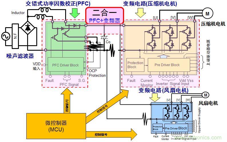 集成PFC及3相逆變的二合一IPM應(yīng)用于變頻空調(diào)