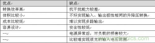結(jié)合常用的隔離與非隔離電源,我們從直觀上就可得出它們的一些優(yōu)缺點,如表1和表2所示,兩者的優(yōu)缺點幾乎是相反的。