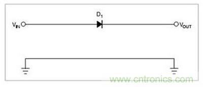圖1一只串聯(lián)二極管保護系統(tǒng)不受反向極性影響,二極管有0.7V的壓降。