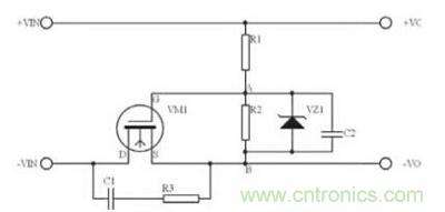 圖4 使用N型MOS管的輸入防反接電路原理圖