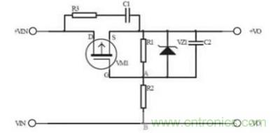 VZ1為穩(wěn)壓管防止柵源電壓過高擊穿mos管。NMOS管的導(dǎo)通電阻比PMOS的小,最好選NMOS。