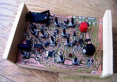 第一片電路板設(shè)計(jì)帶著點(diǎn)街頭涂鴉藝術(shù)風(fēng)格,作者是來自荷蘭的工程師Gijs Gieskes,他做的是迷你合成器電路。轉(zhuǎn)一轉(zhuǎn)電路板上的所有電位計(jì)(potentiometer),能創(chuàng)作出美妙的聲音;Gieskes的網(wǎng)站還有很多有趣的作品,他也將一些成果透過在線商店銷售。