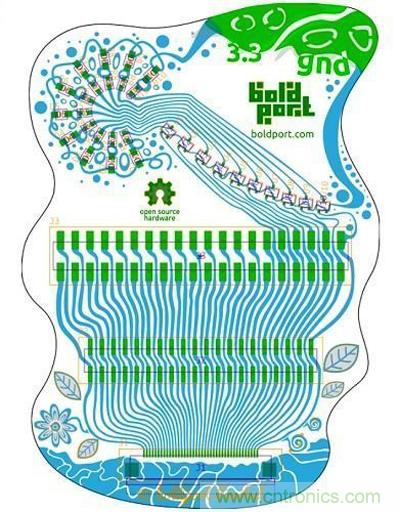以下是許多有如藝術(shù)品的電路板設(shè)計(jì),對于這些創(chuàng)作者,筆者忍不住要贊賞他們的努力成果;當(dāng)你在做電路板繞線設(shè)計(jì)時(shí),你可以維持傳統(tǒng)做法使用枯燥簡潔的線條,但加入一些變化與美學(xué)的繞線形式在功能上并不會(huì)打折扣;看看這些作品,難道你不覺得它們看起來是如此生機(jī)勃勃,比純粹講究實(shí)用主義的四方形綠色塑料板更有“人性”?